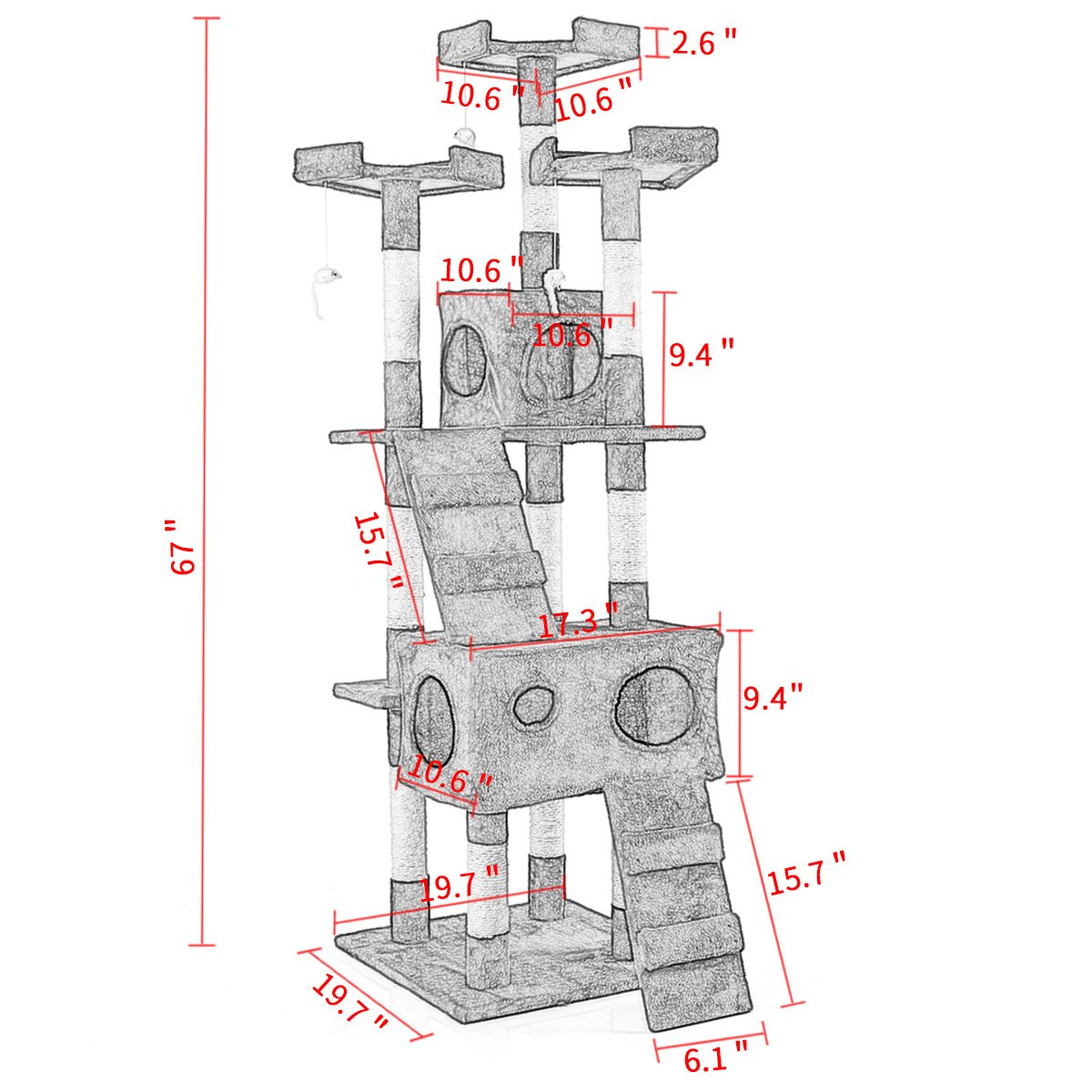 [Stable & Sturdy]: Constructed with a stable and sturdy structure and strengthened with battens at the bottom; the 67'' multi-level cat tree tower allows your cats to freely climb without any shaking. Each platform has a maximum weight capacity of 20 lbs.